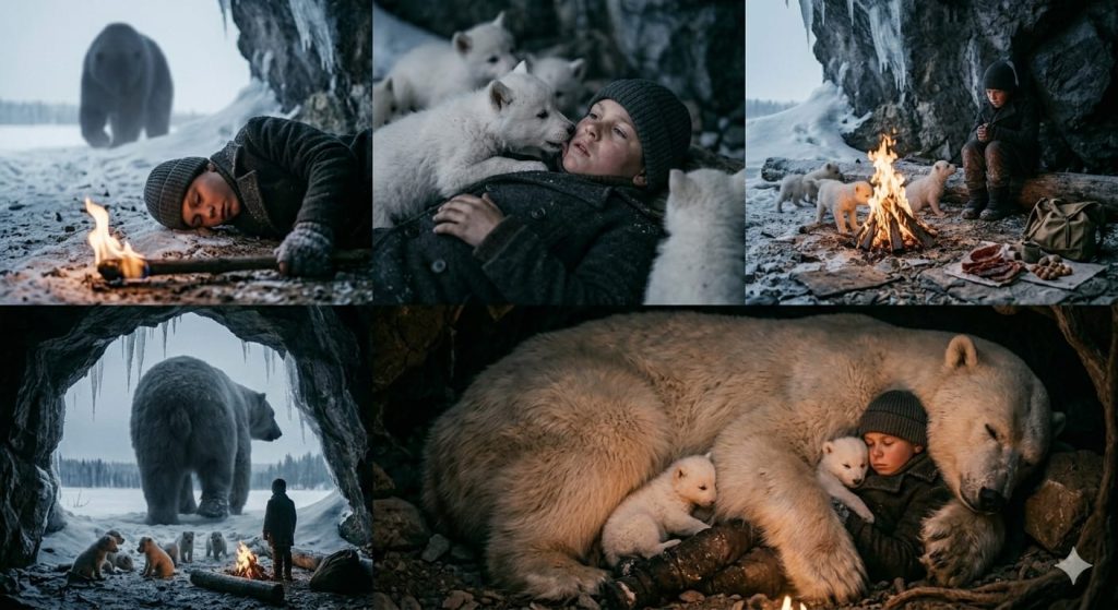 Ne kadar zaman geçtiğini bilmiyorum ama yavaş yavaş gözlerimi açtığımda yavruların yüzümü yaladığını hissettim. Hemen toparlanıp bir taşın dibine sığındım. Karşımda duran şey devasa bir beyaz ayıydı! Kalbim yerinden çıkacak gibi çarpıyordu. Yavrulardan biri yanıma gelip oynaşmaya başlayınca, dev ayı bana doğru bakıp bir kez daha kükredi. O an yavru yanımdan ayrılıp annesinin yanına döndü.